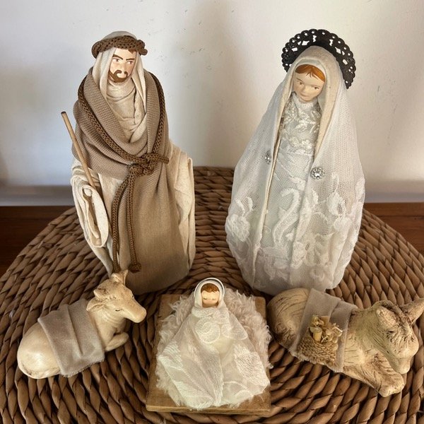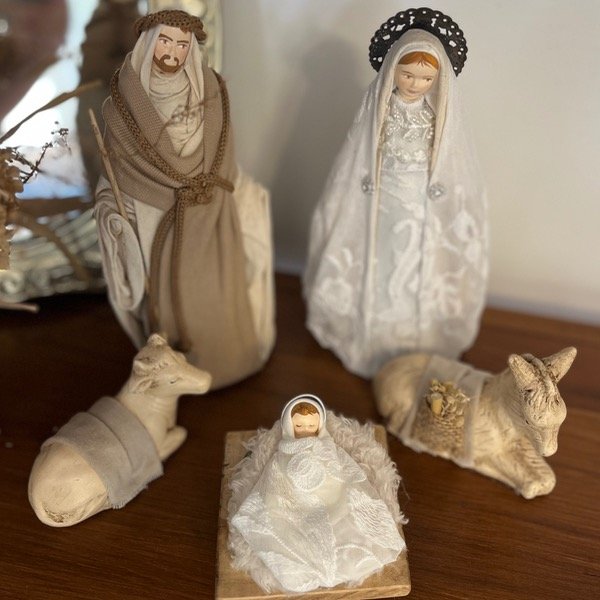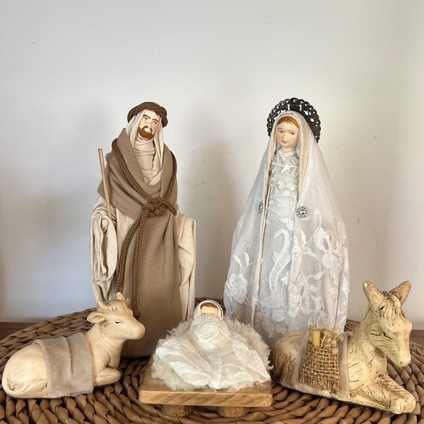 Sagrada Familia más burro y vaca - 20cms - realizada en tela